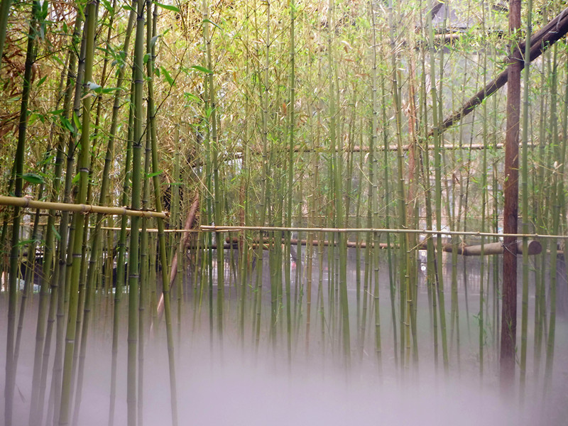 竹(zhú)語(yǔ)園:竹語(yǔ)園力求營(yíng)造(zào)一種幽靜、靜謐的景觀氛圍,以竹語亭為核心景觀,周圍活動休息空間通過竹林圍合形成私密(mì)感,為遊賞者提供一處幽靜(jìng)的休息空間,突出空間主題。鋪設草坪720平方木。喬灌木72棵,剛竹(zhú)520平方米(mǐ),其中點綴扶芳藤及常(cháng)春藤增加效果,竹林中並安裝噴霧係統(tǒng),給人猶如仙(xiān)境般的感覺,在(zài)群芳亭內聆聽竹語之聲(shēng)。鋪(pù)裝麵積397平方米。