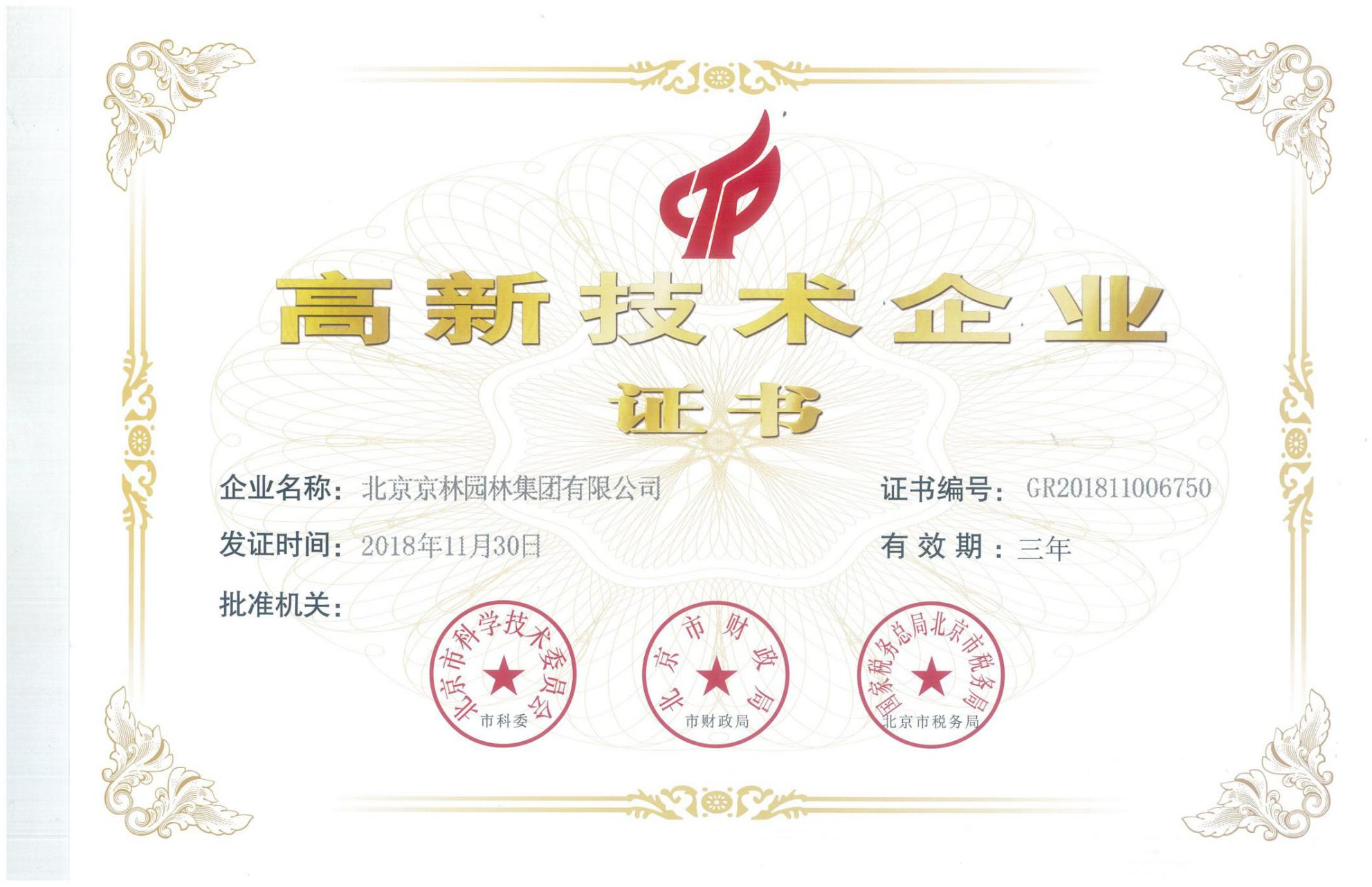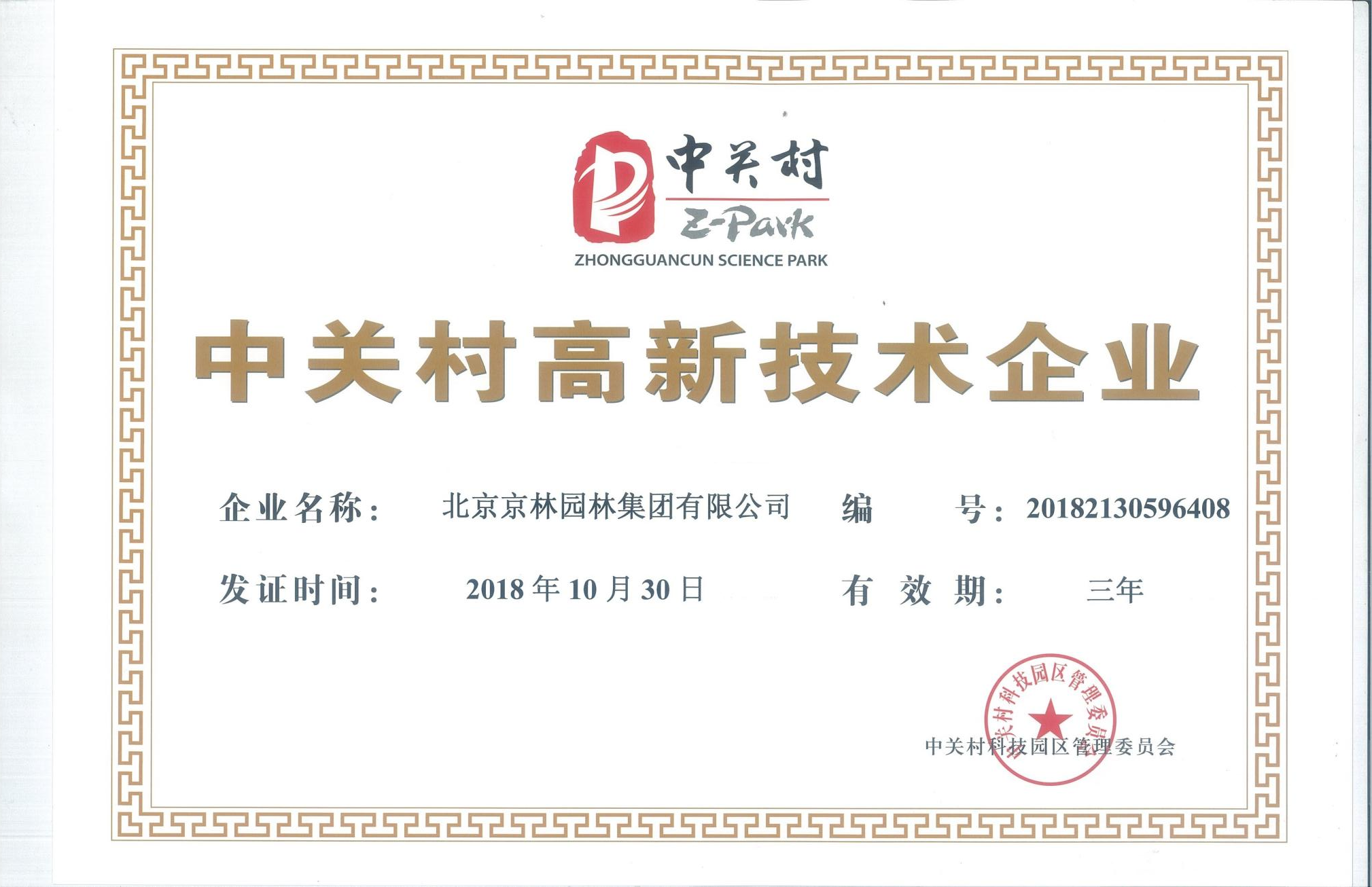中關村高新技術企(qǐ)業證書(shū)