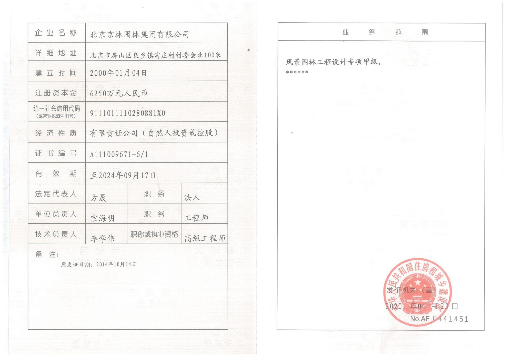 風景園林工程設計專項甲級