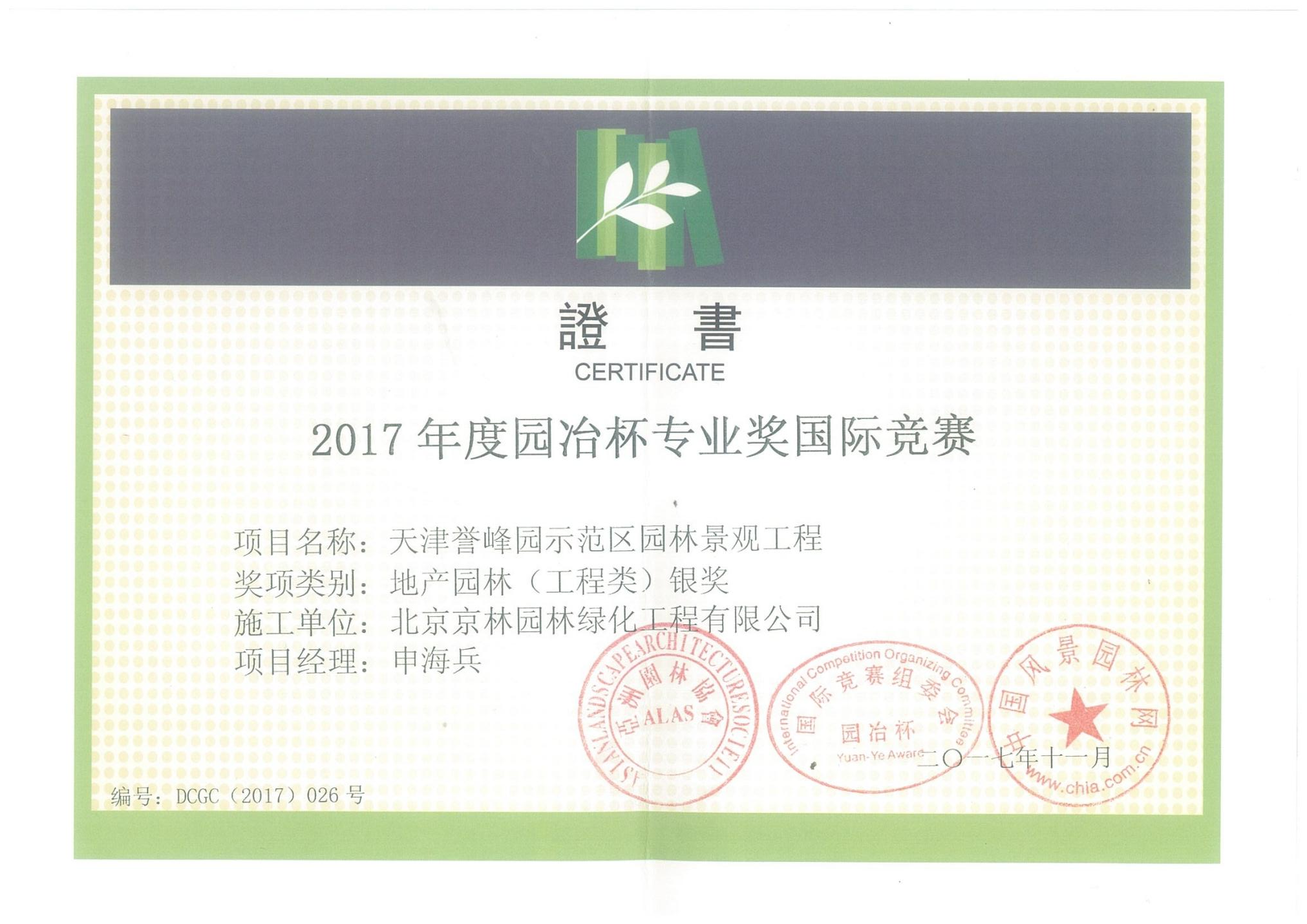 2017年(nián)度園冶杯專業獎(jiǎng)國際競賽——天津譽峰園示範區園林景觀工程