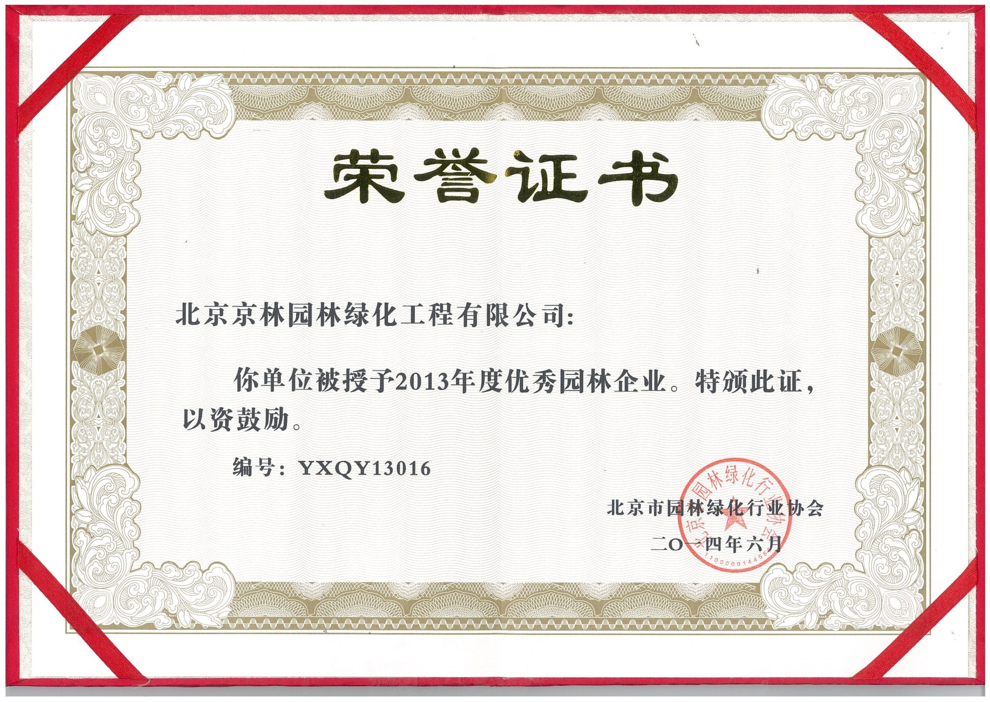 北京市園林(lín)綠化行業協會2013年度優秀(xiù)園林企業